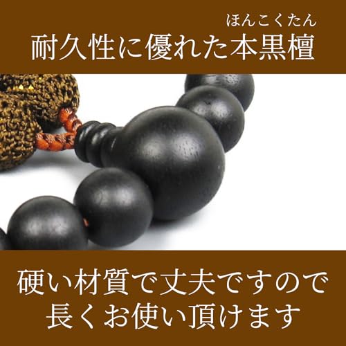 第3選 念珠堂 日本製 数珠 縞黒檀 22玉 数珠袋付 全ての宗派でお使い頂けます